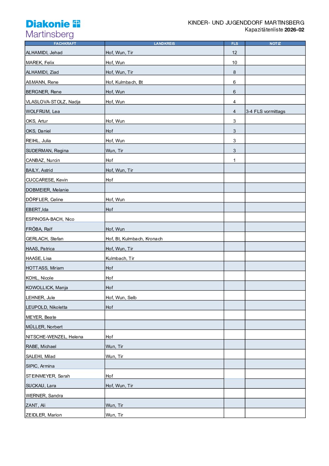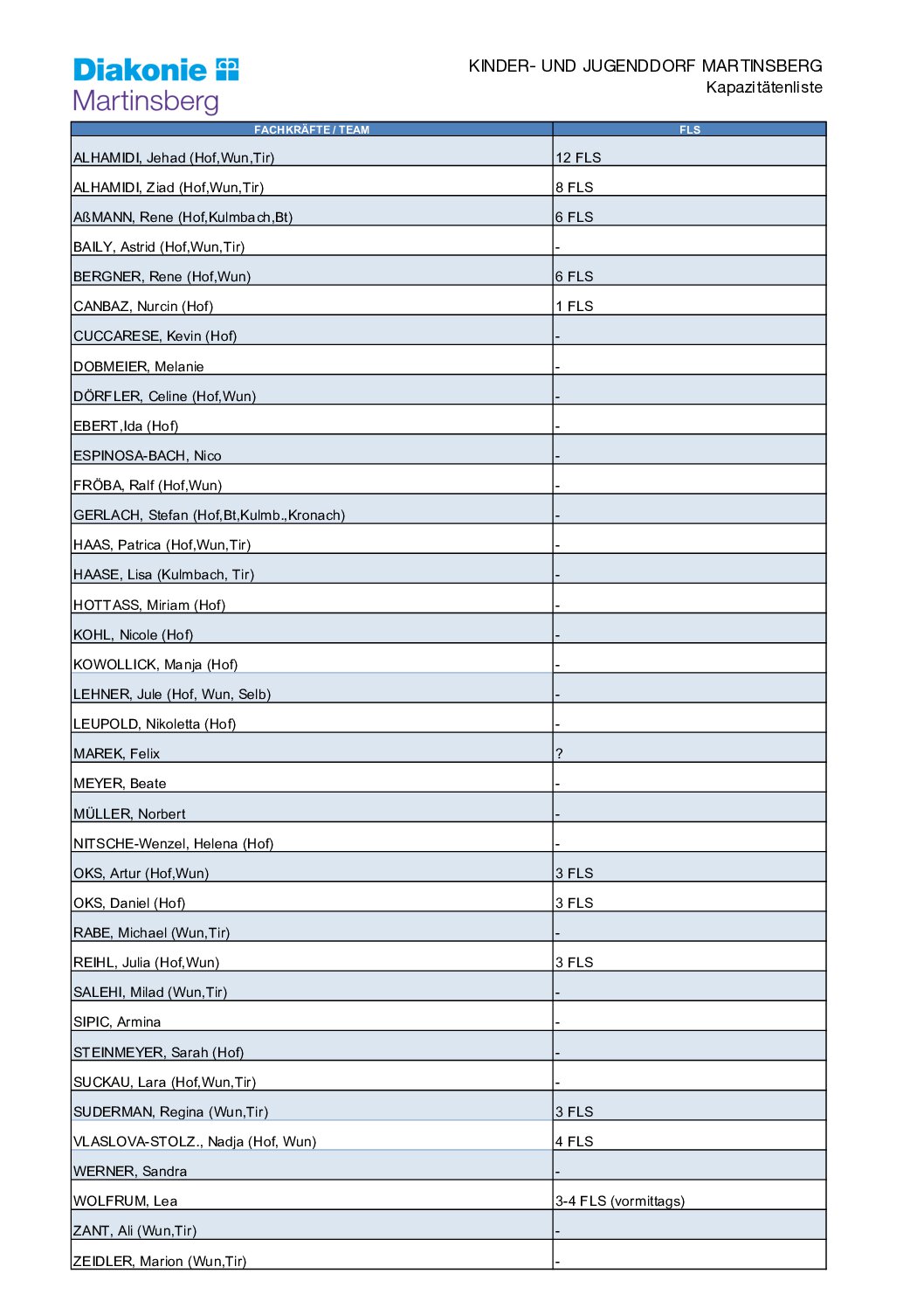 KAPAZITÄTENLISTE
