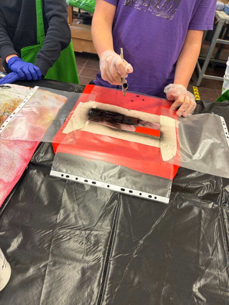 Schritt für Schritt arbeiteten die Schülerinnen und Schüler konzentriert daran, die Farbe gleichmäßig aufzutragen. Während einige unter Anleitung mit der Airbrush-Pistole arbeiteten, trockneten andere die Farben vorsichtig mit dem Föhn.