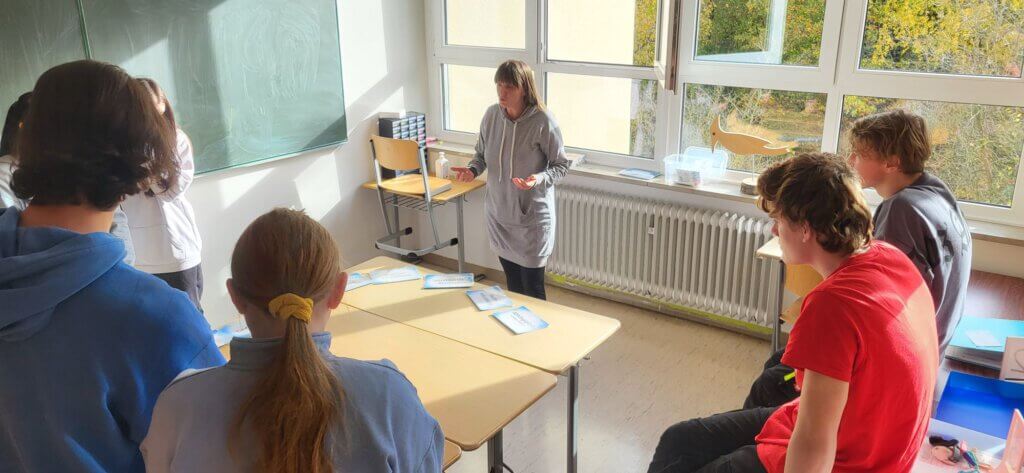 An beiden Tagen führte Kriminalhauptkommissarin Stefanie Vollert (Kripo Hof/K4) die Jugendlichen durch ein abwechslungsreiches Programm aus Information, Interaktion und Reflexion. Die Themen reichten von Suchtmechanismen, Alkohol- und Nikotinprävention über das Jugendschutzgesetz für die 8. Klassen bis hin zu Cannabis und illegalen Betäubungsmitteln für die 9. Klassen.